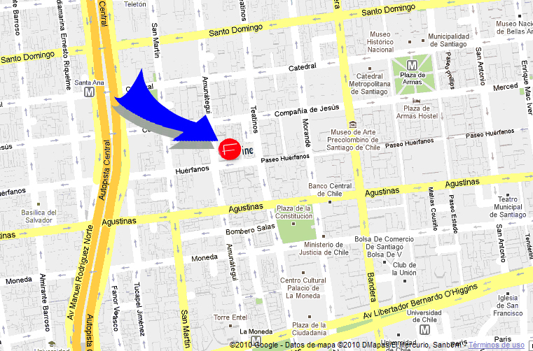 Our privileged location Huérfanos Street # 1373 Office 409, allowing ready access to and from our offices. To enlarge or print the map, click on it